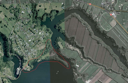 Red circled area on Karapiro lake edge - the red line leading to the circled area is the access road.The area itself has rudd and my eldest kid swears hes seen carp there, but ive not seen them myself.