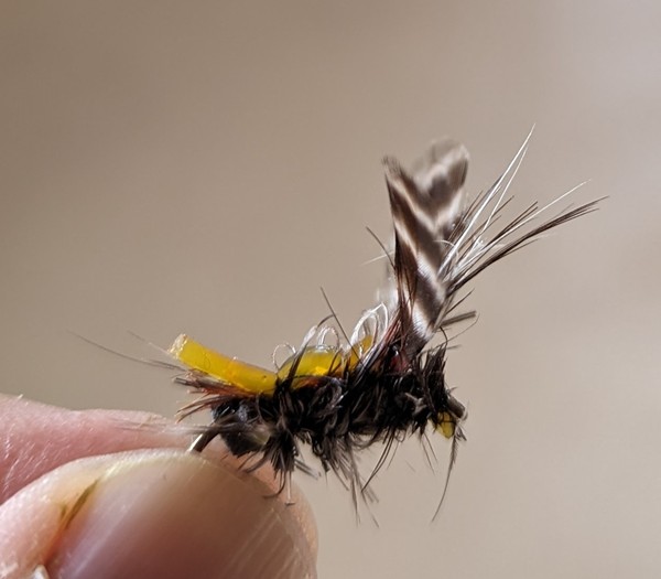 A) I fished with a emerger about 60cm under. But the Adam kept sinking. I used mono line to the Adams.
