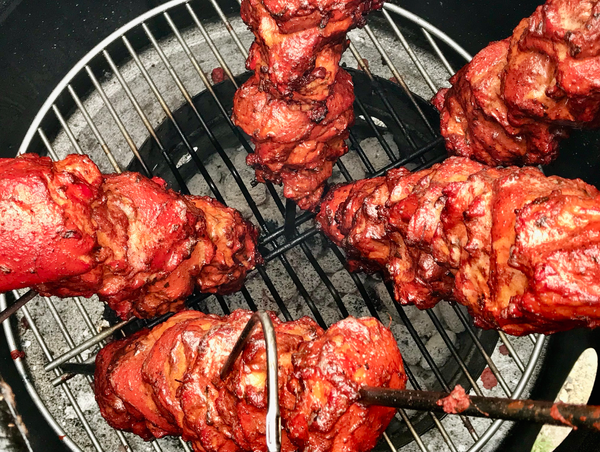 An aquatance used my marinate, method a couple weeks back.. I did not know he was going to use one of those.. He too also 1st time after hot smokes portable smokers etc. He said came out bit dry but flavour was spot on.. I think was because. 1/ The temps from the coals inside maybe to hot. 2/ internal meat temps took up maybe 3/5 deg too high which resulted in time being extended.