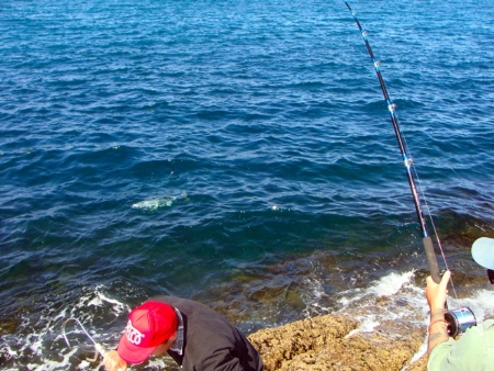 Gaffman: my non-fisho mate on his first land-based fishing trip!
