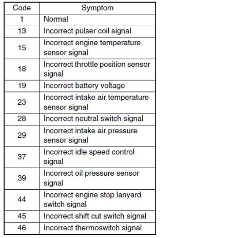 Technical manual had the following codes for self diagnosis of the electrionic control system. Suggested using a light based diagnostic tool - part # YB06795.