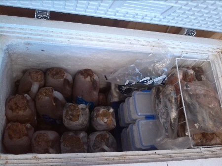 Hey Krow, we've got a dedicated chest freezer for ice, bait n burley, the 4l red containers and the 10l paint buckets are all burley, the first go had goo splatted up the water tank and over me .