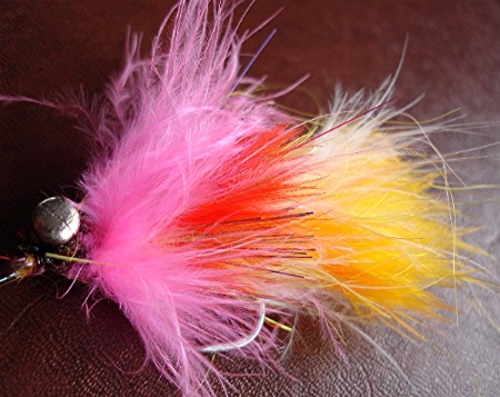 Tied on a #2 stainless hook. Bucktail construction, with flash in the tail.