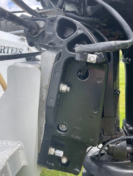 Furthermore, there is also an alloy wedge that has bee inserted between outboard and mounting plate on hull. I'm not sure what purpose this serves, but that is where I would expect to find a rubber pad to dampen any vibration from the motor. Picture below illustrates this.