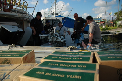 Pete gave the crew Bill Collector1, Bushpig, Euan and Bill a good run down on the gear while the supplies were loaded for our five day trip to Epi Island, just the essentials....