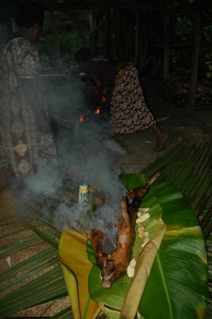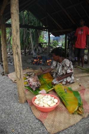 And if we already hadn't eaten like kings, the last night on the island the village put on a pig for us and we got to see the whole process from it being cleaned up, marinated, wrapped in coals and leaves and put on the fire....