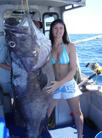 Hapuku hotspots are generally well known by local fishers. Any moderately deep to deep reef, preferably with plenty of current, is a good bet, but bear in mind that fish may be present only seasonally. Some inshore reefs also hold fish at certain times and some of these are in surprisingly shallow water. Most anglers will drift over areas of foul given anchoring is not usually an option due to the depths. Drifiting also covers more ground and lends sone action and life to deadbaits or strips which hapuku tend to find more appealing. Bottom bouncing is the usual technique where once the sinker reaches the bottom, a little more line is let out at regular intervals to keep close to the bottom for as long as possible during the drift. Once the line angle gets too significant (>~30 degrees) then it's probably time to begin the long haul to the surface. If the captain can move the boat to keep the line angle to a minimum then that helps too. Once a hapuku is hooked, try and get some distance between the fish and the bottom as soon as possible. They are powerful swimmers and once hooked have a tendancy to make every effort to head for home - i.e: rocky caves and holes which will end in tears. The rest of the fight will be pump and wind but note that as they near the surface, the air bladder will expand to such a degree that they will float and you'll need to wind a bit faster to keep the tension on.